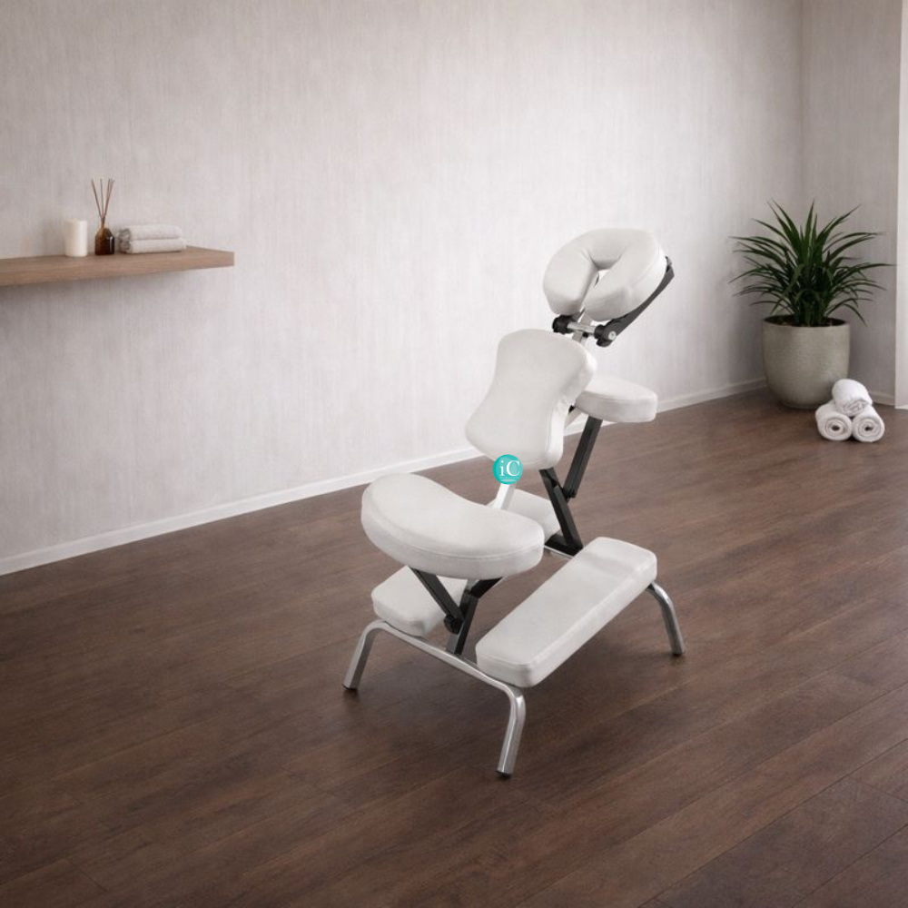 Φορητή καρέκλα φυσικοθεραπείας μασάζ. Κατάλληλη για επαγγελματική χρήση καθώς επιτρέπει άνετη θέση για μασάζ στην πλάτη, στον αυχένα και στο κεφάλι. Iδανική λύση τόσο για θεραπευτές μασάζ όσο και για καλλιτέχνες τατουάζ.