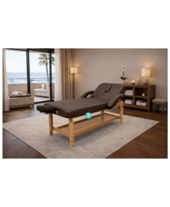 Κρεβάτι μασάζ με ρυθμιζόμενο ύψος ποδιών και χειροκίνητη ανάκλιση πλάτης. Διαθέτει ταπετσαρία υψηλής ποιότητας, ανθεκτική στην καθημερινή χρήση και εύκολη στον καθαρισμό. Με ανθεκτική και σταθερή ξύλινη βάση και ξύλινο κάτω ράφι για πετσέτες, έλαια κ.α. Το κρεβάτι περιλαμβάνει επίσης, αποσπώμενα πλευρικά μπράτσα και προσκέφαλο με ρυθμιζόμενη κλίση, τρύπα υποδοχής προσώπου και μαξιλαράκι.