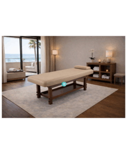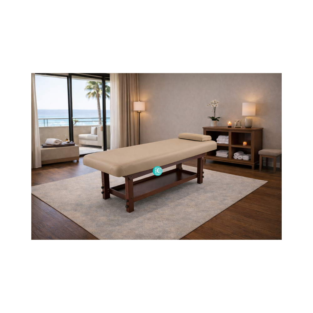 Σταθερό κρεβάτι massage spa, με ξύλινη ανθεκτική και σταθερή βάση σε χρώμα wenge, ρυθμιζόμενο ύψος ποδιών και σταθερό ξύλινο κάτω ράφι για πετσέτες, έλαια κ.α.