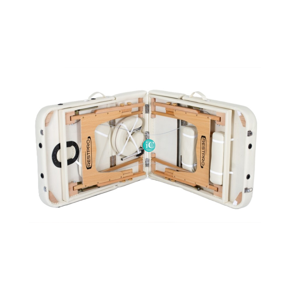 Rest Pro Vip 4 ξύλινο φορητό κρεβάτι, 3 τμημάτων, με ρυθμιζόμενο ύψος και θήκη μεταφοράς. Με αποσπώμενο προσκέφαλο ρυθμιζόμενης κλίσης και αποσπώμενα πλευρικά εξαρτήματα. Προσφέρει άνεση στον πελάτη και ευκολία στην εργασία του επαγγελματία. Είναι κατασκευασμένο από καλής ποιότητας υλικό, σταθερό και ανθεκτικό, με σύγχρονο σχεδιασμό.