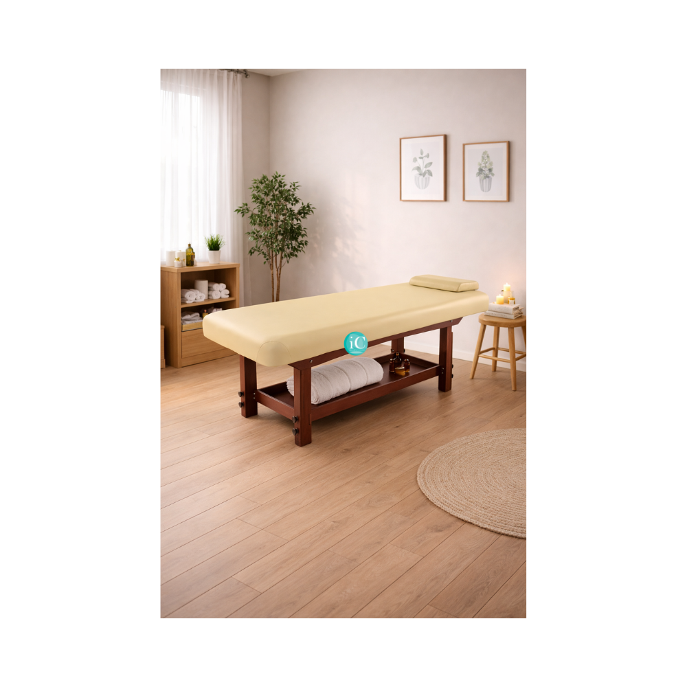 Σταθερό κρεβάτι spa ξύλινο, για χώρους ομορφιάς και ευεξίας.