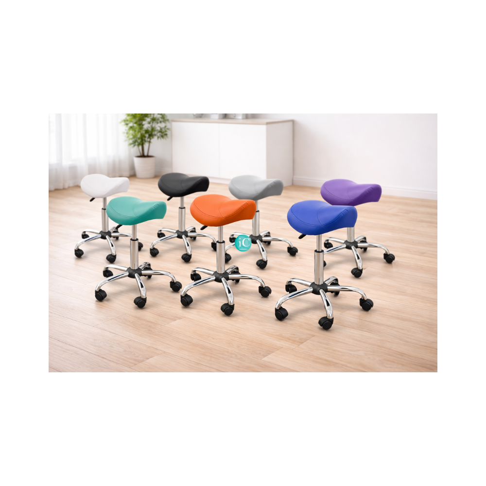 Τροχήλατο σκαμπό πόνυ με ρυθμιζόμενο ύψος, χωρίς πλάτη, με περιστρεφόμενη βάση εργονομικού σχεδιασμού.