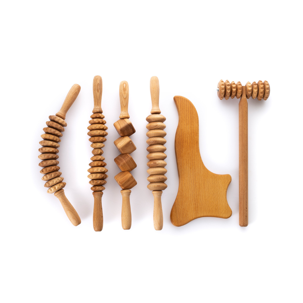 Ξύλινα Εργαλεία Μασάζ Μαδεροθεραπεία – Πλήρες Σετ από Ξύλινα Εργαλεία 6 τεμαχίων. Ιδανικά για επαγγελματική χρήση, κατάλληλα για όλο το σώμα.